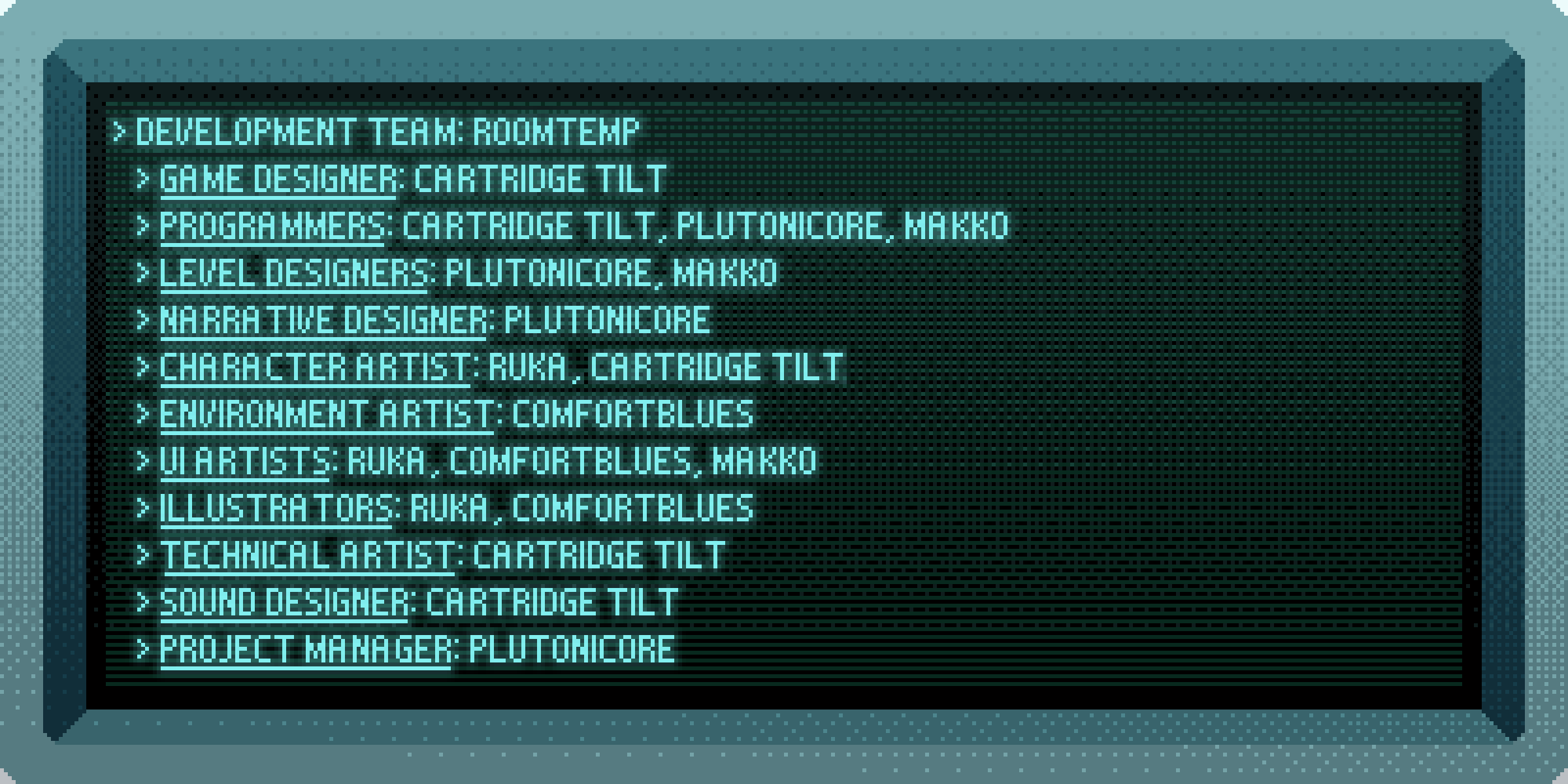 | Authors | RoomTemp, ruka, plutonicore, cartridge.tilt, Mackkkk, Benilde GameDev, comfortblues |